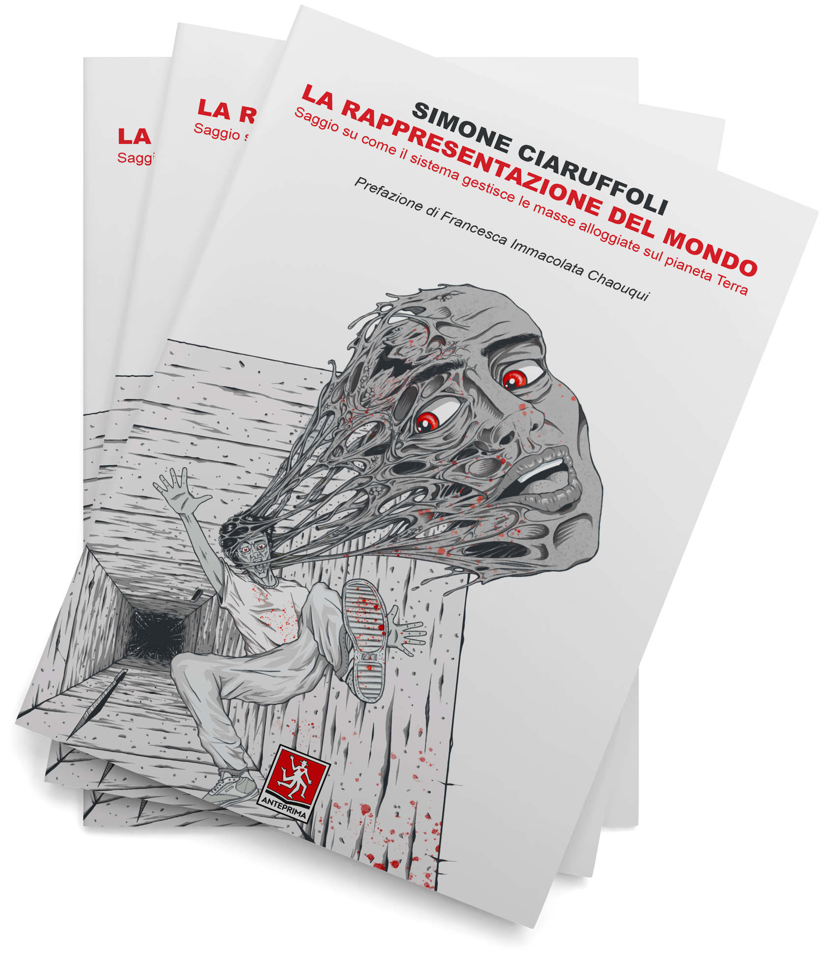 Come i genitori, per tutelarlo, nascondono al loro bambino problemi e vicissitudini famigliari, allo stesso modo i «nostri genitori» (Stati, società, corporazioni, lobby), per tutelarci e al contempo per vincolarci, ci nascondono ciò che realmente accade intorno a noi. Ma l’aspetto più interessante è che gli individui stessi – noi tutti – contribuiscono ogni giorno a mantenere questa rappresentazione. Simone Ciaruffoli ci svela come alla costante rimozione della verità da parte del sistema corrisponda la rimozione inconscia operata dal singolo individuo, che così facendo mira a preservare, senza esserne consapevole, i propri limiti e, con essi, la propria circoscritta sicurezza. Tutto, per Ciaruffoli, è rappresentazione: la politica, la cultura, l’informazione, la scienza, l’arte, la democrazia, la storia, le religioni, la famiglia e perfino l’esistenza stessa dell’essere umano che, nel farsi persona, indossa la maschera sociale per sopravvivere sul palcoscenico della vita.